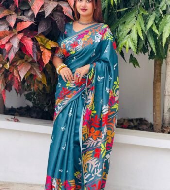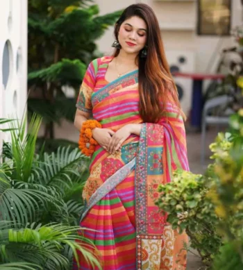 প্রিমিয়াম ডিজিটাল প্রিন্ট চান্দেরি সিল্ক শাড়ি + ব্লাউজ পিস