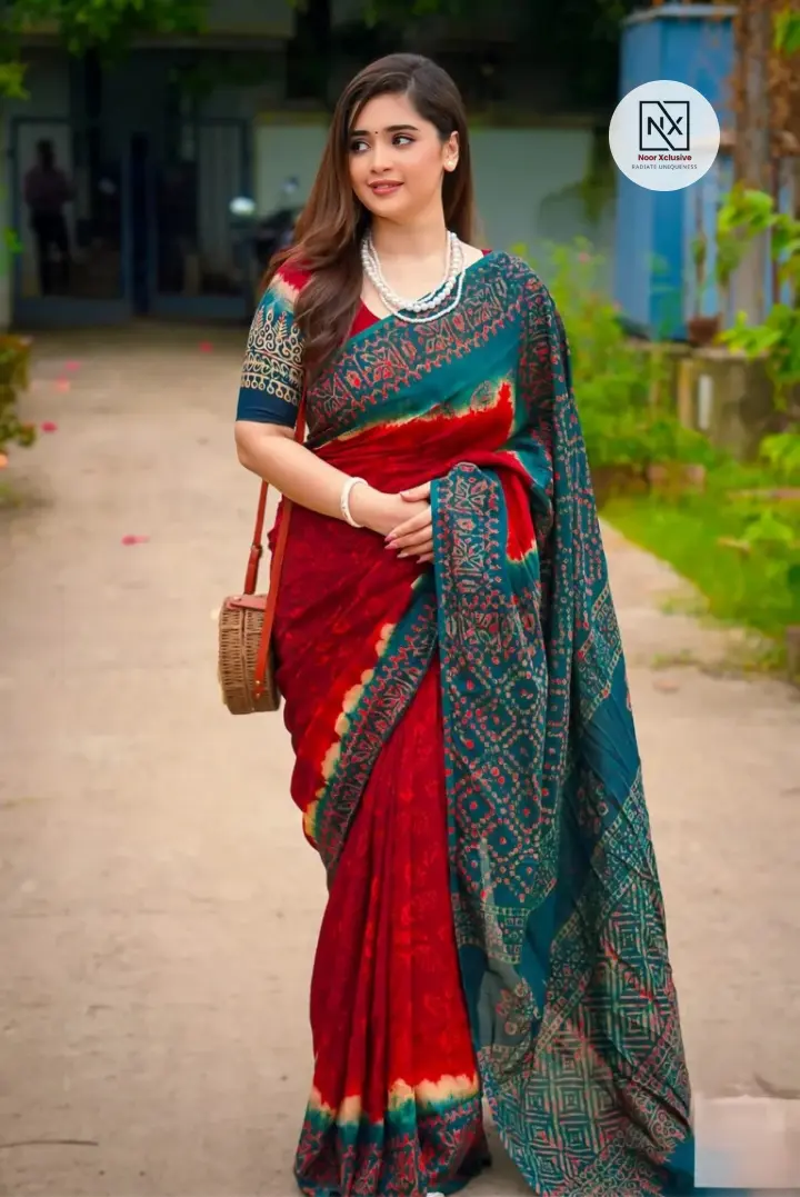 🌸 ট্রেন্ডি সানমুন সিল্ক বাটিক প্রিন্ট শাড়ি – Noor Xclusive 🌸